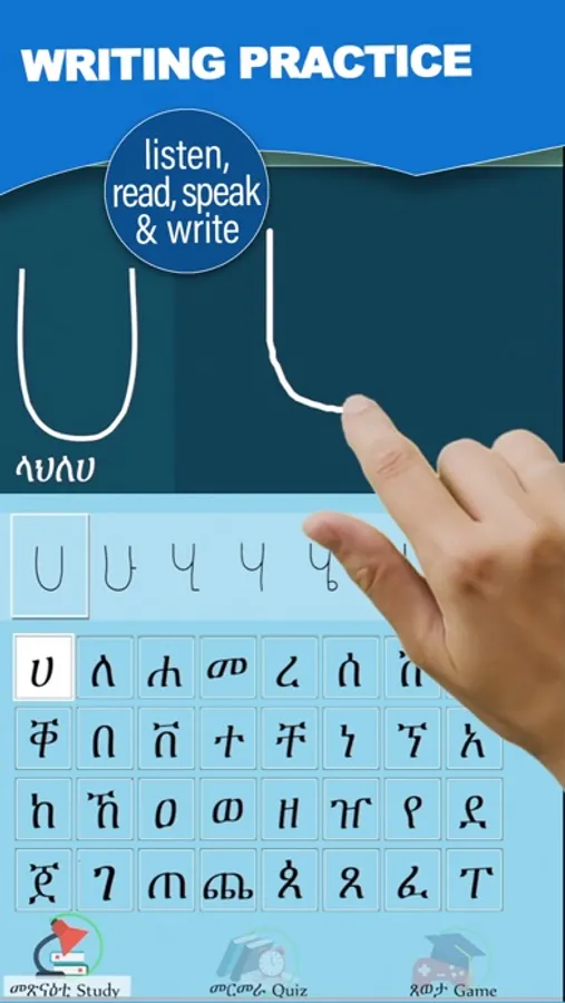 It teaches the whole Tigrigna alphabets, that is 'Fidelat' sounds, shows how to write and lets you practice writing right in your mobile phone or tablet. You will learn more than 200 Tigrigna words along side Fidelat.