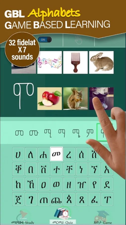 The whole learning process is presented in three - study, quiz and game modes in one screen. It is designed to help the Tigrigna learner to study the language while having fun.