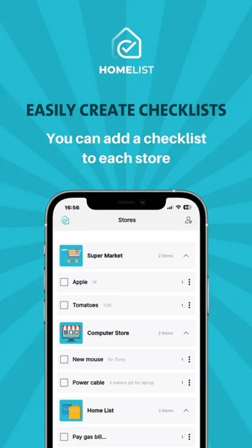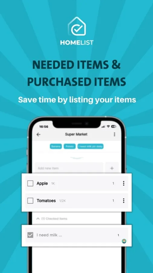 Homelist is a smart and simple app that lets you create, manage, and share your household task lists with your friends and family. With Homelist, you can easily keep track on your daily, weekly, or monthly household chores and grocery shopping. The app is designed to help you stay organized and never forget your tasks. Whether it's a list of vegetables for your grocery shopping or a list of household chores, Homelist makes it easy for you to keep everything in one place. You can share your lists with your friends and family, and work together to keep your home running smoothly. Homelist is your ultimate household task management solution. Try it today and experience the ease and convenience of having all your household tasks and grocery shopping in one place!