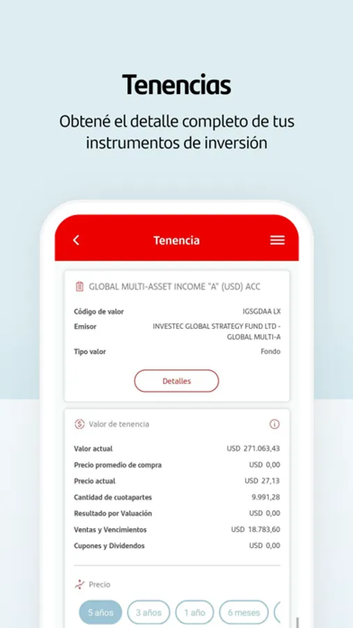 - Información de tus inversiones: consultá contratos de inversión, movimientos, balances, tenencias y evolución de tus retornos