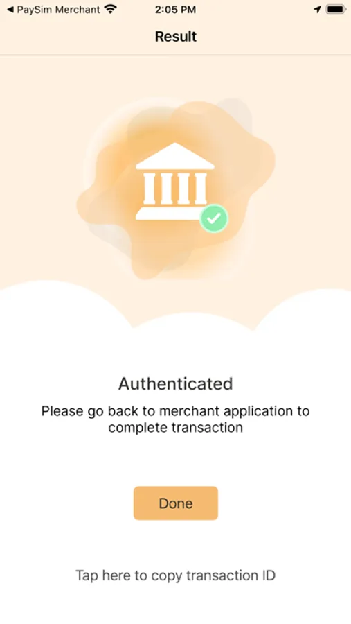 The PaySim OOB App allows simulating Out Of Band (OOB) authentication with the PaySim Merchant app.