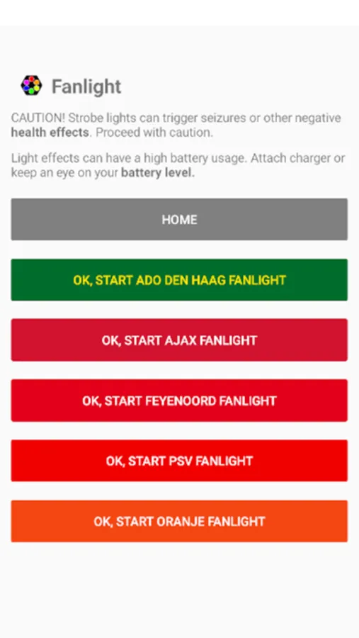 Flitsend voetbal supporters FANlight in de clubkleuren van ADO, Ajax, Feyenoord en PSV.