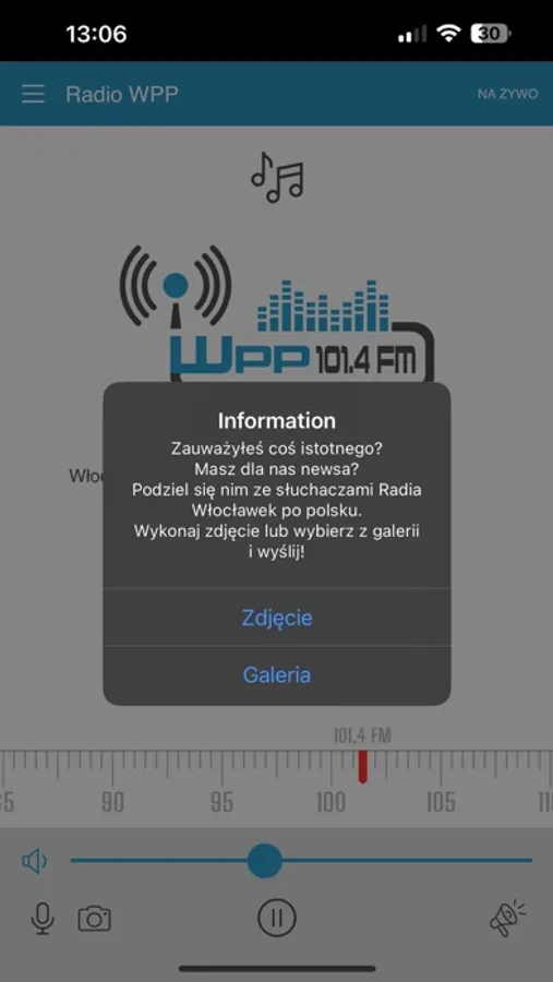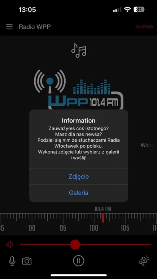 The RadioWPP application allows you to listen to the radio "Włocławek po polsku" live and send a photo and voice recording to the radio station.