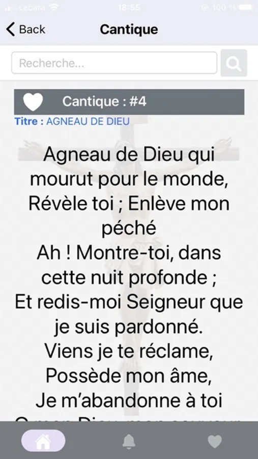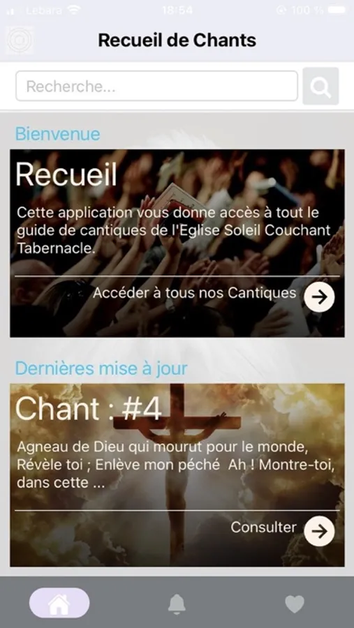 A travers cette application, vous pouvez donc chercher un chant, sauvegarder vos chants favoris, consulter un chant.