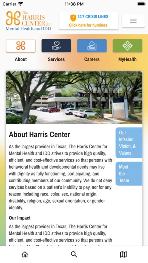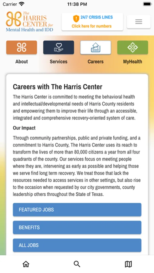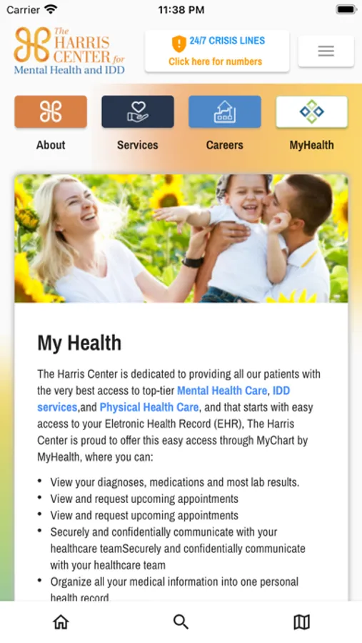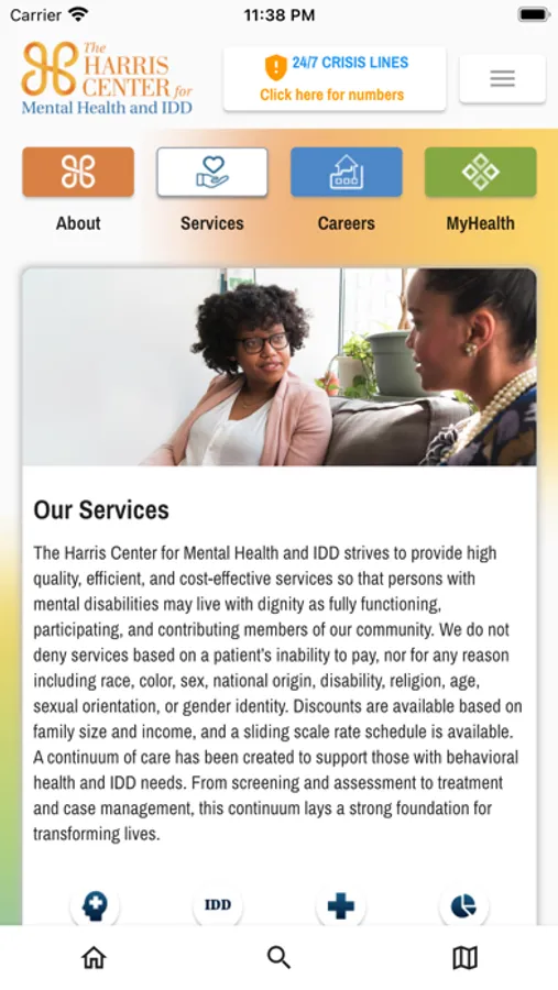 The Harris Center mobile app is a convenient way to seek professional services for Mental Health and IDD services focusing on: