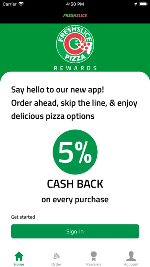 Order Freshslice pizza and collect FRESH REWARDS. Get 5% cash back for every purchase into your FRESH REWARDS account and redeem anytime for discounts on future purchases.