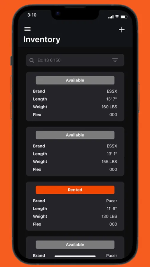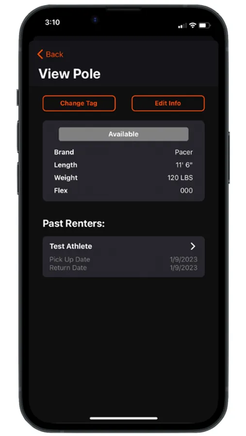PVR allows coaches to create, monitor, and maintain a pole rental inventory