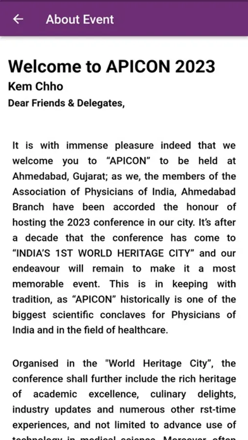 Application gives you entire information about the conference. What all is there in the conference. Which faculties, conference location and other venue related details.