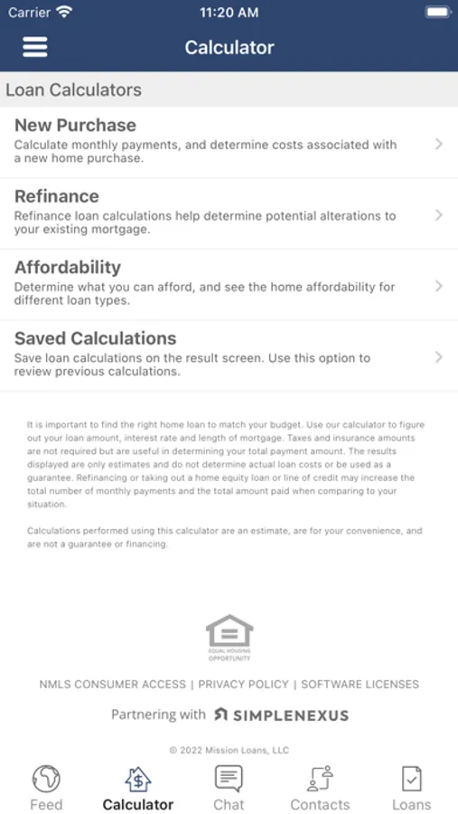 • Easily access contact information for your Mission Loans Loan Officer and real estate agent and share this information with your family and friends
