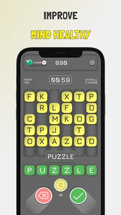 Create from letter combinations! This game is a grid board with 6 separate columns of 5 letters each. You can get protection down from each column. If it consists of the word made up of the letters you poured below, expand it and get POINTS. The more words you find, the more points you earn. You can choose from the downloaded letters and delete them. Words must be between 3 and 6 letters. You can renew all rights 10 times; next refresh will be with rubies. It takes 3 minutes! You should use your time very well. Push the limits of your alphabet. Extensive vocabulary requirements This challenging target will improve your vocabulary. Beat the highest score in this mess! and see your World Ranking score. Relax and train your brain anywhere!