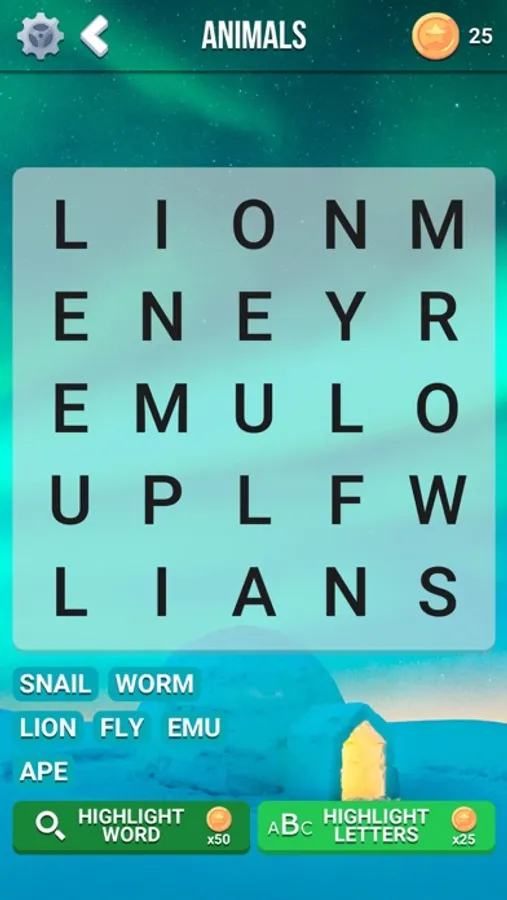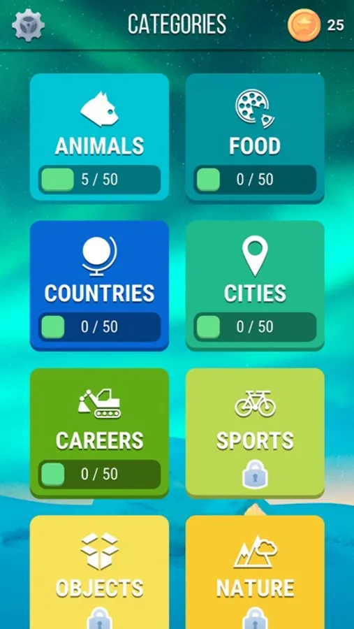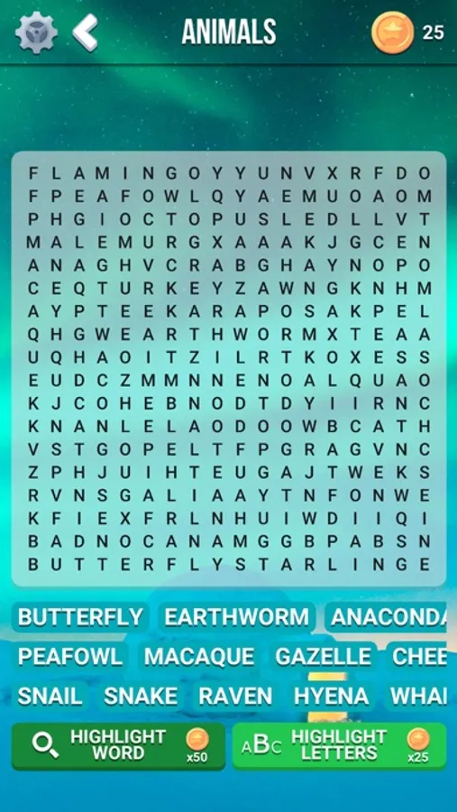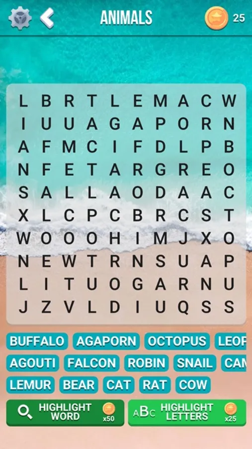 - Multiple categories: animals, food, art and culture, objects, countries, cities... get coins by solving word searches and unlock new categories.