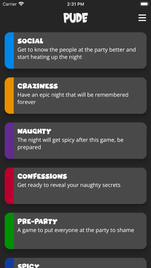 Ready to uncover secrets and share yours? With a user-friendly and intuitive interface, Pude is accessible to everyone, regardless of whether they've played "Never Have I Ever" before. And the best part: it's always in your pocket, ready to be the highlight of any gathering.