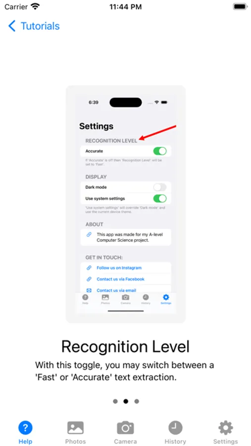 With this app you are able to select a photo or take a photo and have the the text extracted from it.