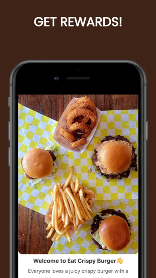 The Eat Crispy Burger app is a convenient way to pay in store or skip the line and order ahead. Rewards are built right in, so you'll collect Stars and start earning free drinks and food with every purchase.