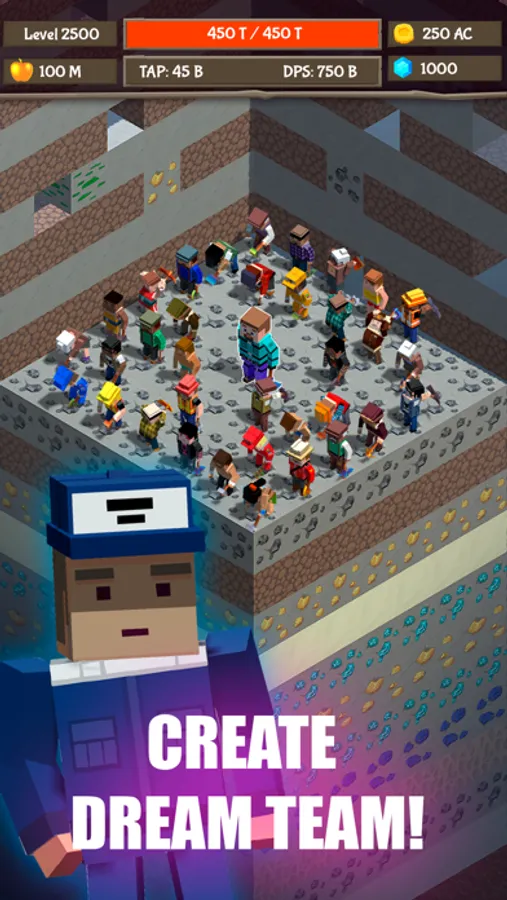 Our brave hero is supported by a lot of other diggers - buy all heroes in this mining idle. You can gain free gems and diamonds by doing achievements in incremental idle. Enjoy crafting & clicking like in best idle games and no wifi games. Let your adventure begin! Idle mining will bring you huge piles of gold if you play this dig game right. Upgrade your mining tools and tap your way to riches! (by tools we mean your pick axe and your click heroes pick axes)