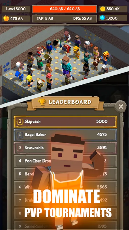 Craft and upgrade your pickaxes - avoid lava! Mine - earn diamonds, find hero, craft blocks - in best clicker games. Destroy blocks, mine reaches, craft items, repeat - all in increment game and idle games!