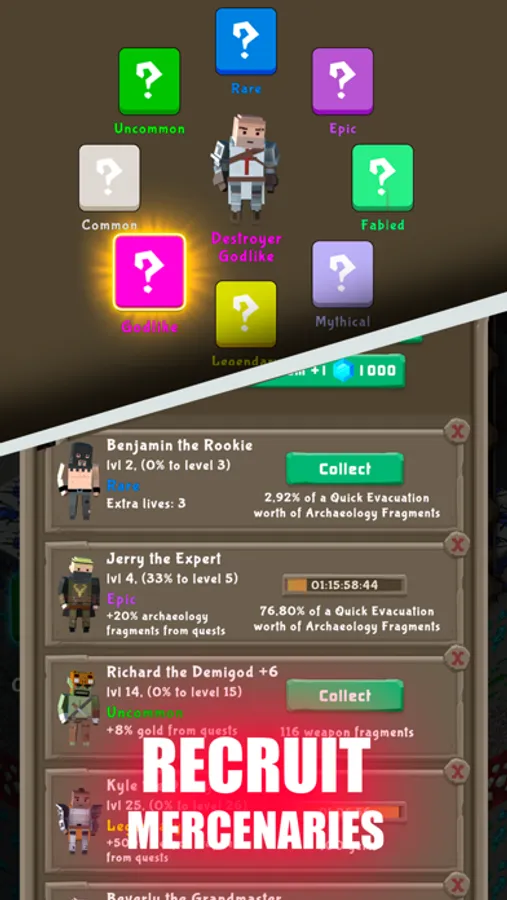 In our idle miner you can hire many useful heroes to help you click. You can create different builds by combining different ancients and archaeologists (and their pick axes) - like in most tapping games with upgrades. Just start clicking to mine and earn gold in incremental idle.