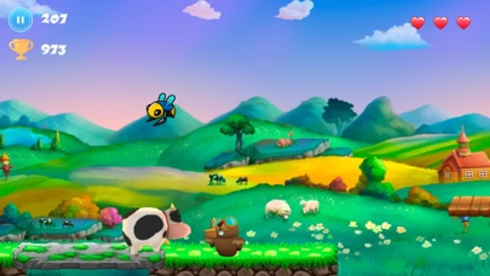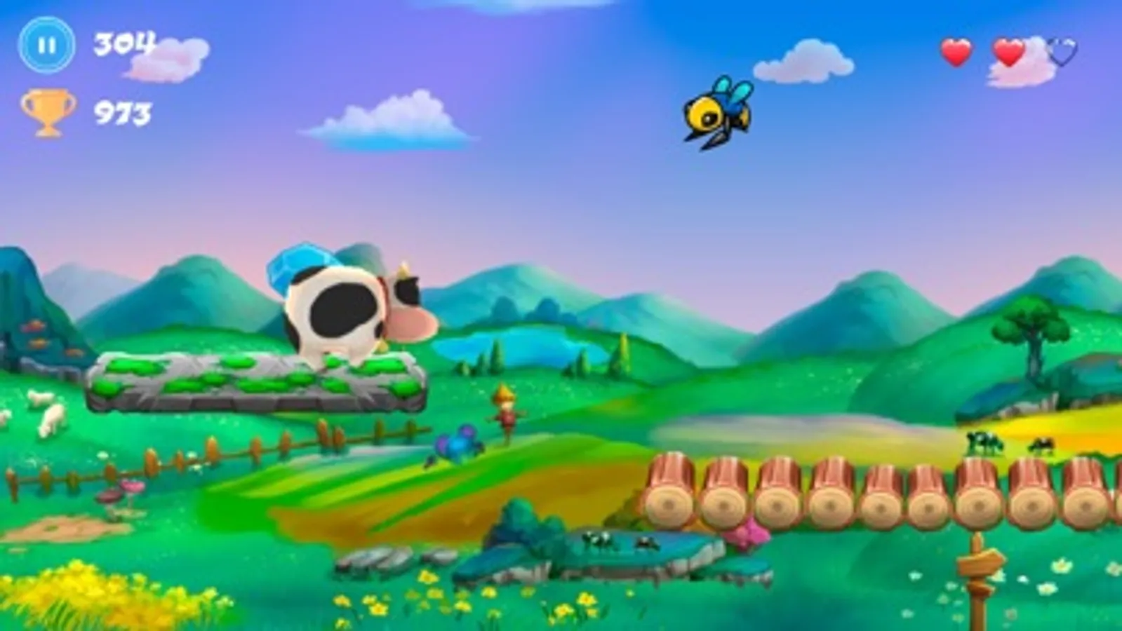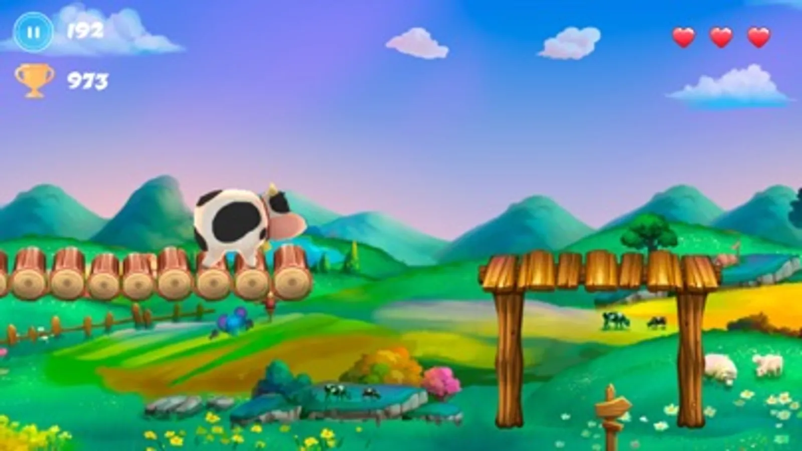 Travel through wonderful worlds inspired by the arctic, farms and the desert with funny characters: penguin, cow and dog.