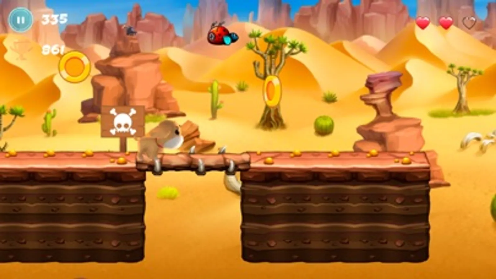 During the tour you will find platforms, traps and enemies that will try to kill your pet.