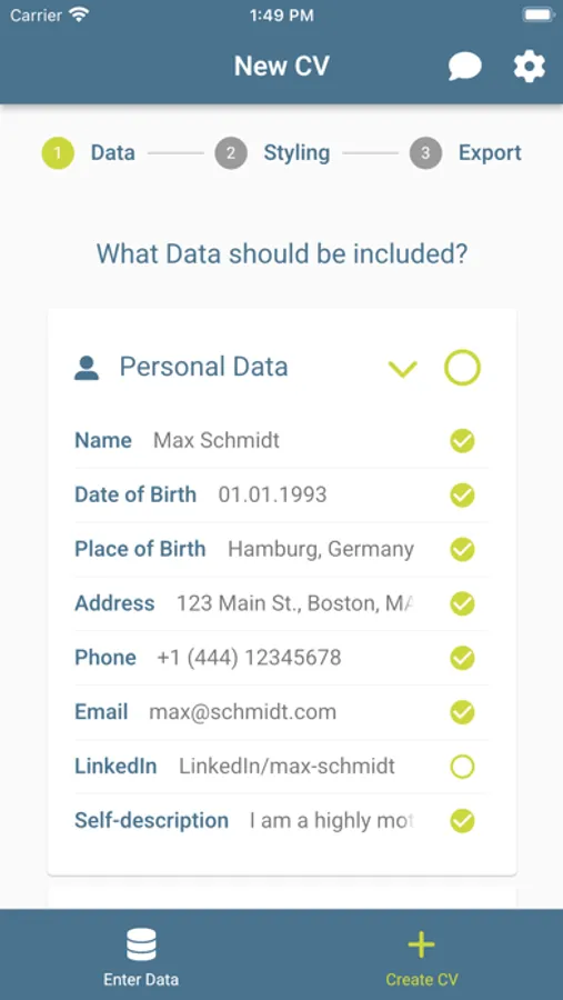 Are you afraid that your data will be stored in the cloud and passed on to third parties? With smartCV all you data is stored locally on your device only.