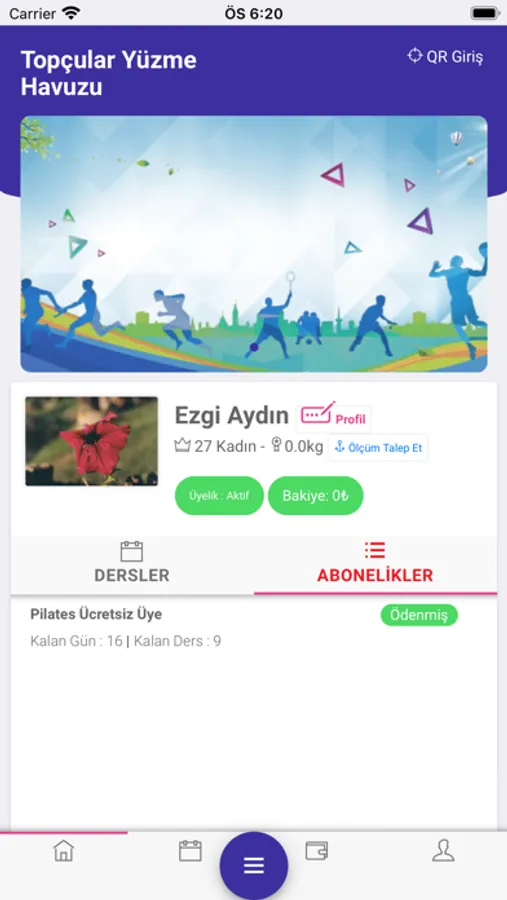 Uygulama içerisinden mevcut aboneliklerinize, kalan süre ve ders adetlerinize, aboneliklerinizin cari durumlarına bakabilirsiniz.