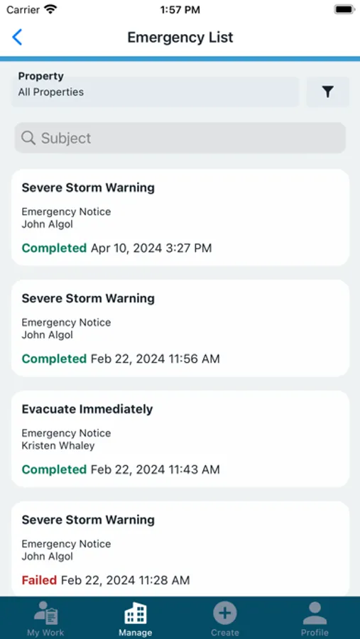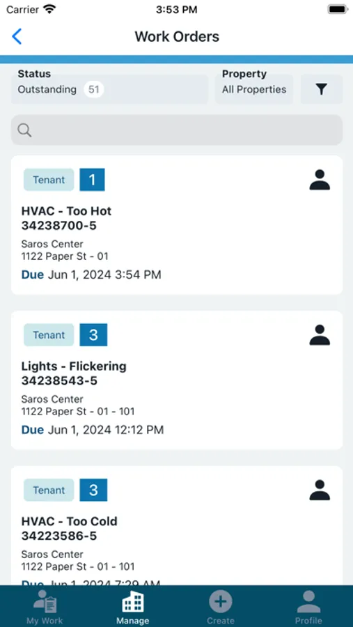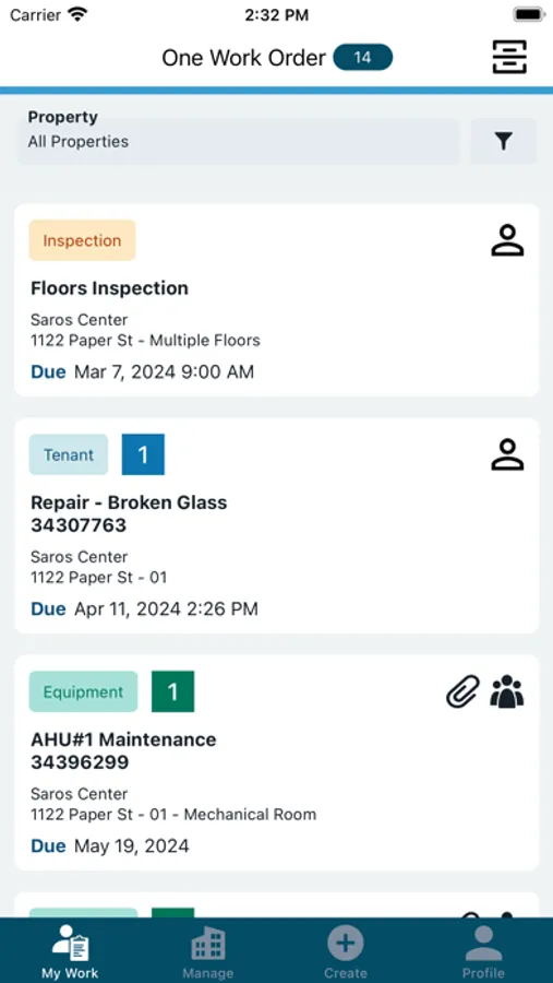 - Access all Tenant, Equipment, and Inspection work orders in a single, streamlined list.