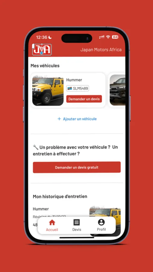 Découvrez comment maintenir votre véhicule en bon état de marche, obtenez des devis fiables et dignes de confiance, et réservez à l'avance avec Japan Motors Africa. Plus besoin de vous déplacer pour avoir une estimation du coût de votre entretien. Vous pouvez également obtenir un historique des entretiens pour chacun de vos véhicules. Le téléchargement et l'utilisation sont totalement gratuits !