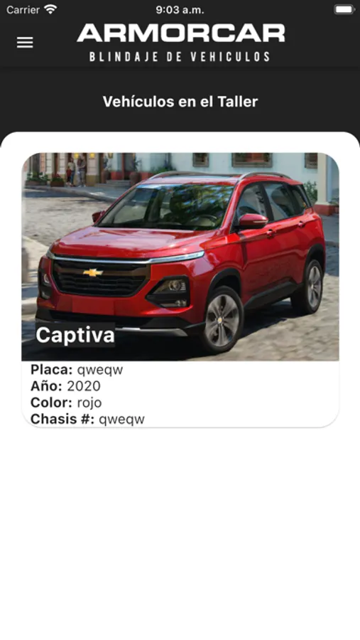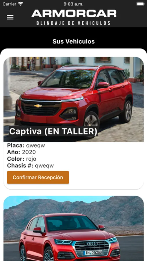 Con esta aplicación podrás iniciar sesión y ver los vehículos que posees