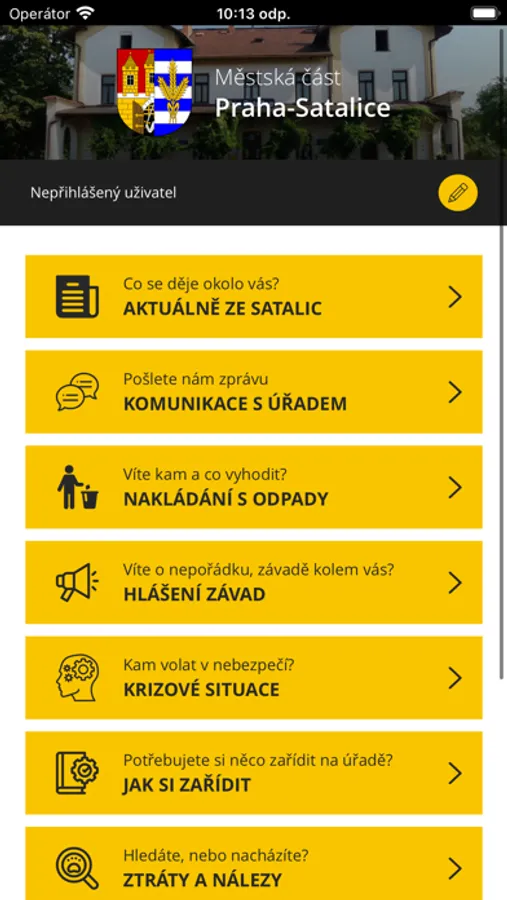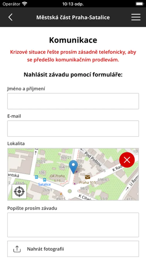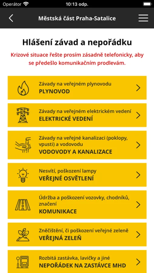 Mobilní aplikace vám umožňuje několik typů kontaktu s úřadem: