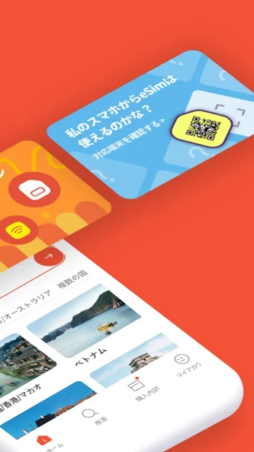海外旅行先でも日本のSIMカードはそのままで、ご利用のスマホに海外eSIMをそのまま設定できます。