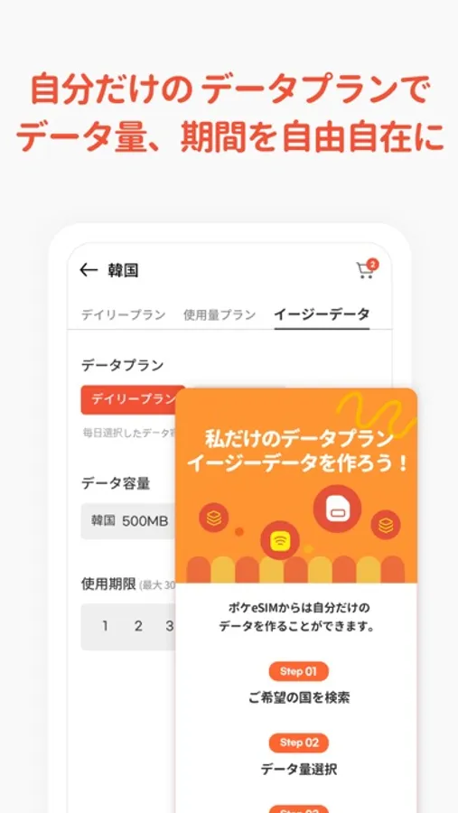 ポケeSIMならその悩みを解決!ご希望の日数とデータ量を組み合わせて自分にぴったりなプランを作ることができます。