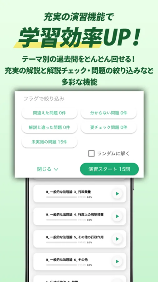 ・問題演習機能:1問1答形式でスキマ時間にサクサク勉強