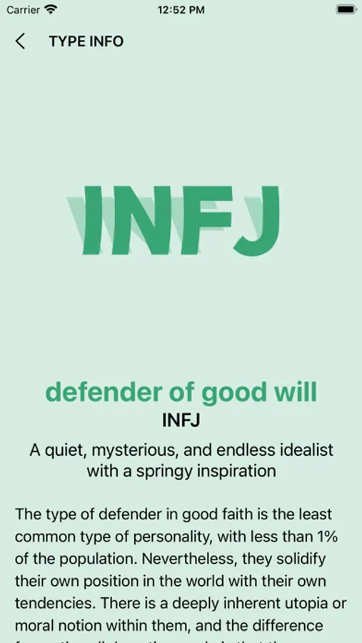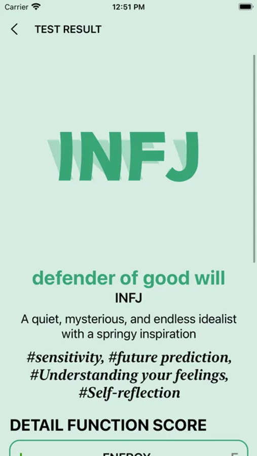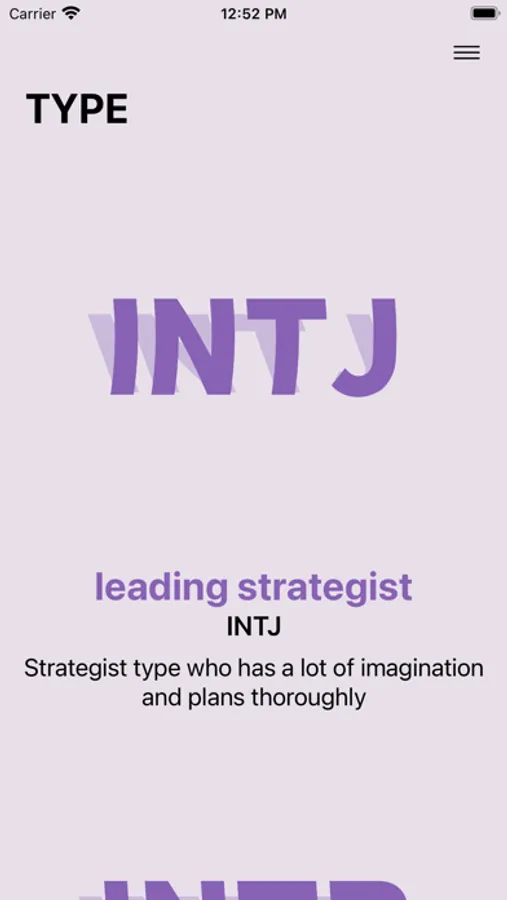 - It shows your personality type in detail in 16 combinations of I/E, S/N, T/F, and P/J.