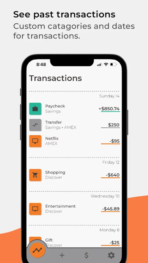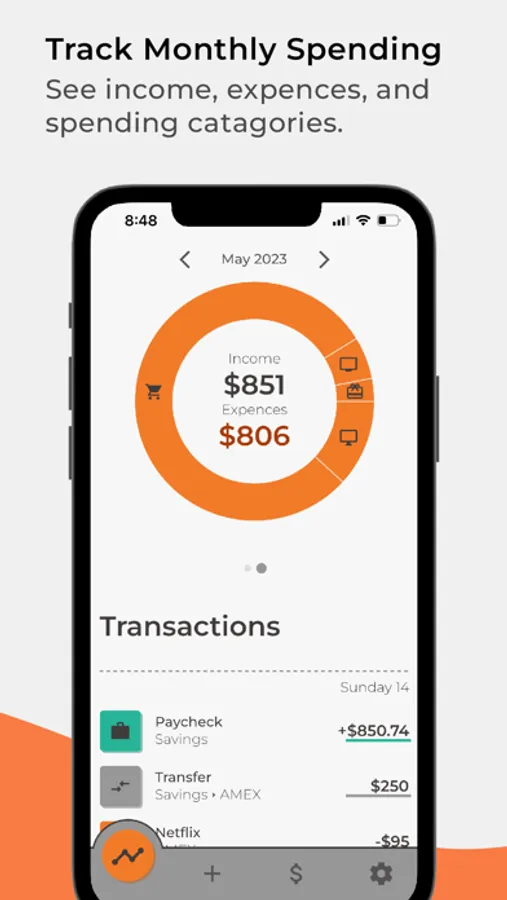 - Account Management: Add each of your accounts. Keep track of your checking, savings, credit cards, and more.