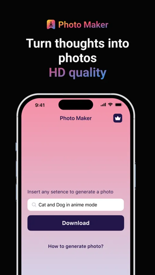 Turn words intobreathtakingdigitalart.Justenteryourhints, choose an art style,and watch Photo Maker bring yourideasto life in seconds.