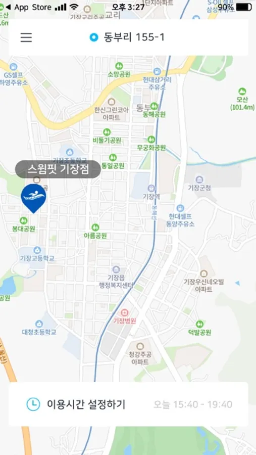 - 위치기반 가까운 스크린 수영 시설을 선택