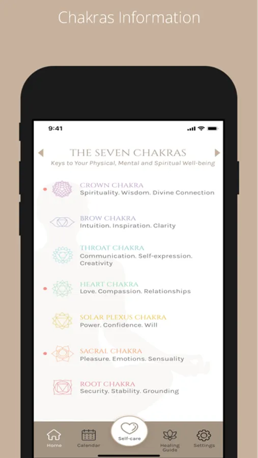 e) Provide the 7 chakras information such as characteristics, benefits, and balance guide etc.
