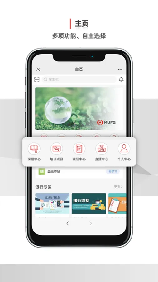 MUFG Learning是三菱日联银行(中国)有限公司为实现向行员提供持续学习和发展机会而量身定做的一款在线学习平台,以期实现专业知识、技能及相关经验的内部分享和传承。该平台拥有大量在线课程供行员自主选择和学习,同时还拥有包括直/录播、在线打卡/调研/测试、以及综合学习项目安排等功能。旨在通过多维度的方式来帮助行员更好地实现知识的掌握和能力的提升,并为将来的发展提前做好准备。