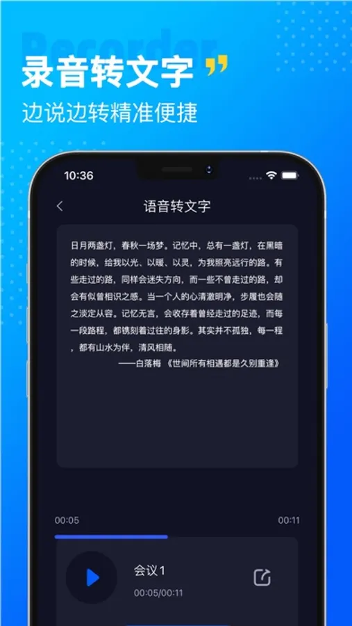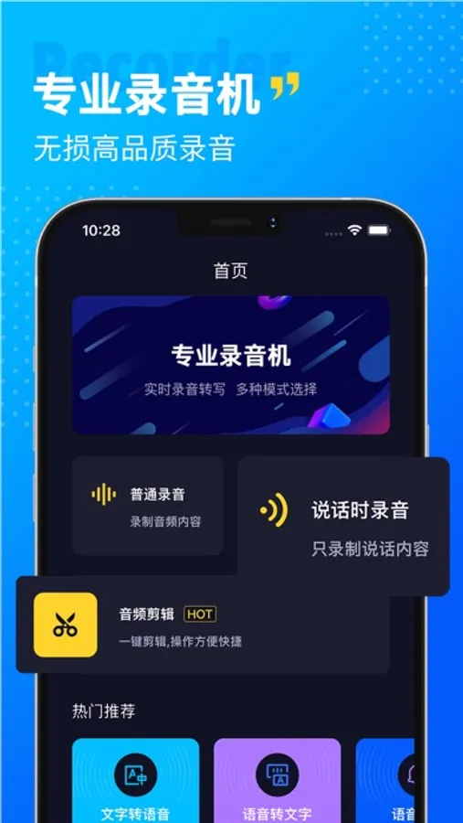 录音机是一款便携式录音工具,支持录音转文字、视频提取音频与编辑功能,可免费导出分享录音文件,录音文件高效管理,让录音更简单快捷!
