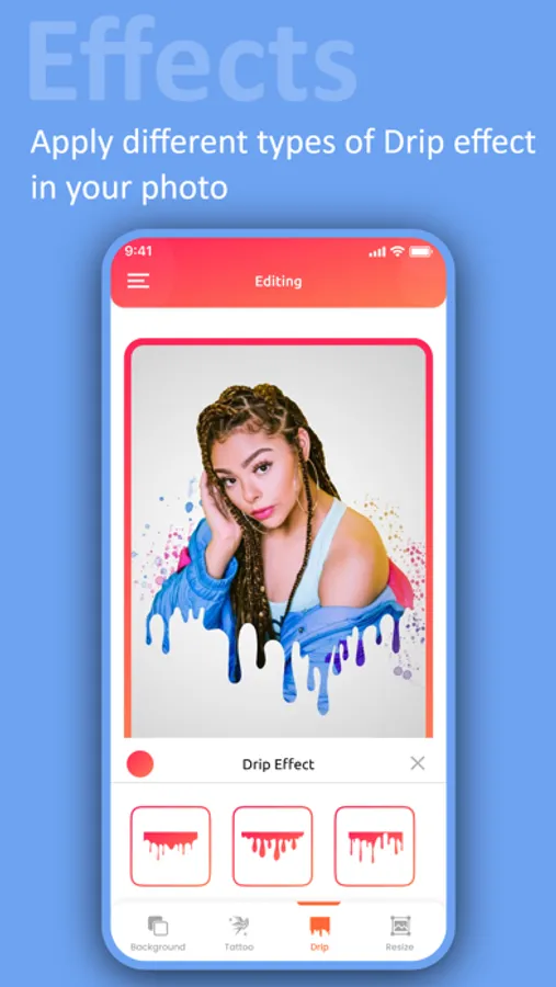 This Photo Editor Dripping feature is winning the social platforms and audiences. Select the picture and choose drip tool with a splash of colors and saturated effects now.