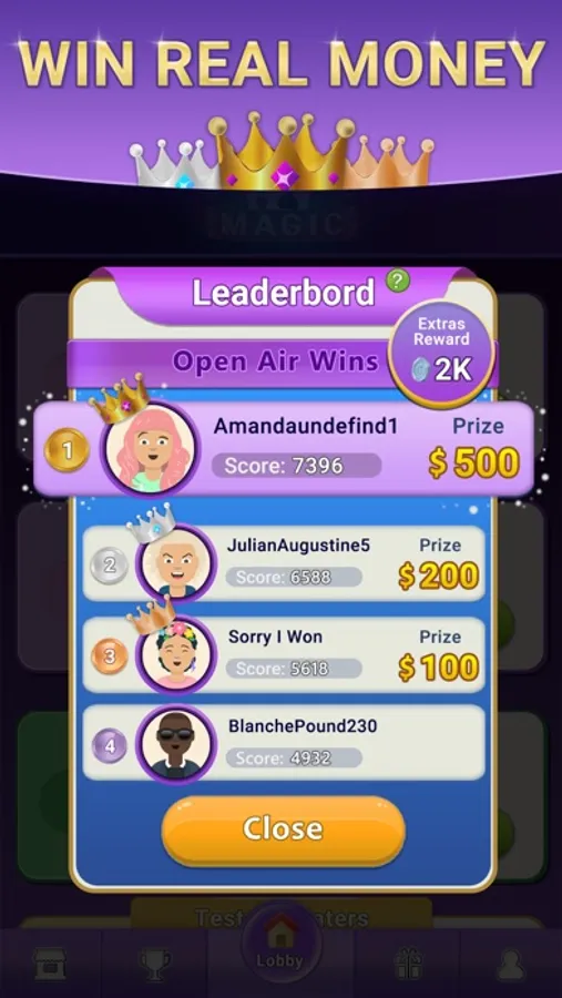 We offers a free mode and a real-money skill game mode. The game is ad-free and offers daily gifts and bonuses.
