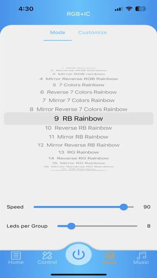 This app is used to control the color, brightness, display mode of RGB and RGB+IC lights. It can easily and quickly select a variety of built-in modes, and can also customize the display effect. At the same time, the master-slave relationship can be set for multiple lights to achieve synchronous display.
