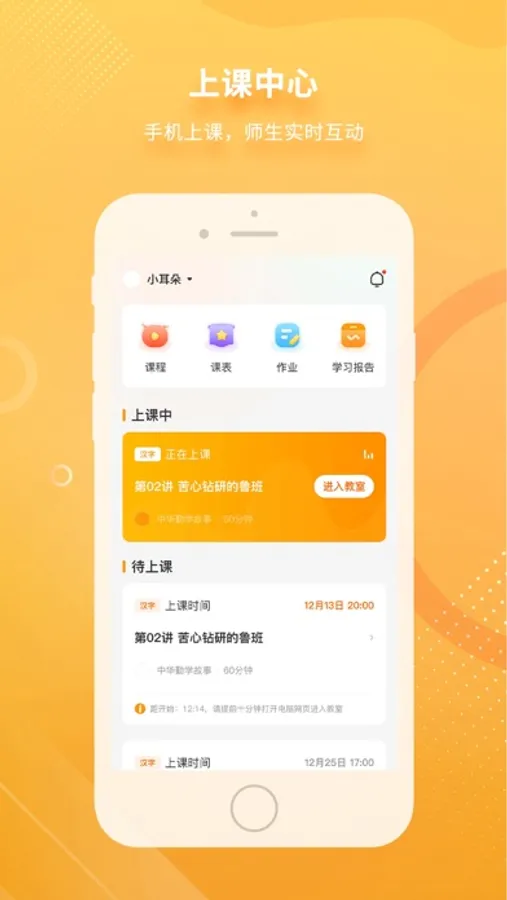 1.支持手机,电脑,Pad上课,在家就能与老师互动