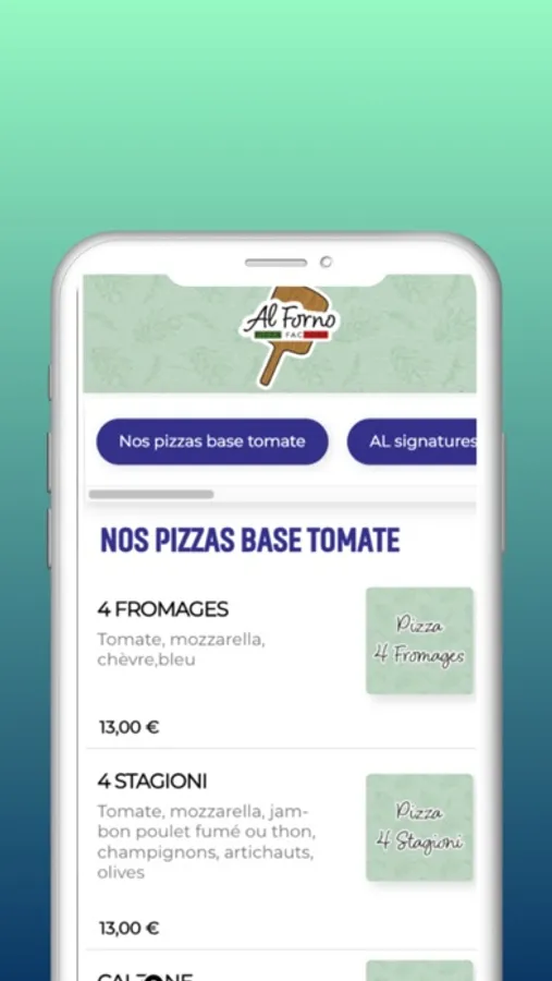 Grâce à l'application Al Forno, vous n'aurez plus qu'à choisir vos plats préférés et à venir chercher votre commande.