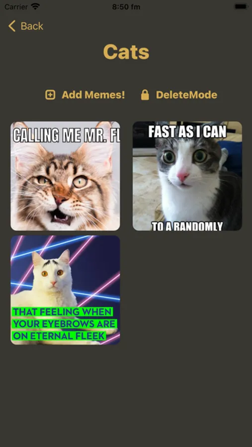 *Manage your collection super easy with the unlimited possibility to delete and add memes.