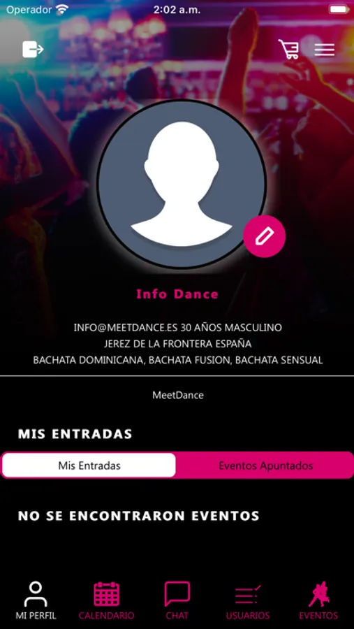 Meetdance te ayuda en tus eventos : En la venta de entradas con cupo limitado y en la creación de eventos gratuitos. Promociona tu evento a través de Meetdance radio y redes sociales. Desde Meetdance puedes promocionar tus escuelas de baile, discotecas, cursos online, talleres, festivales, conciertos, sociales, congresos y todos tus eventos de pago o gratis.