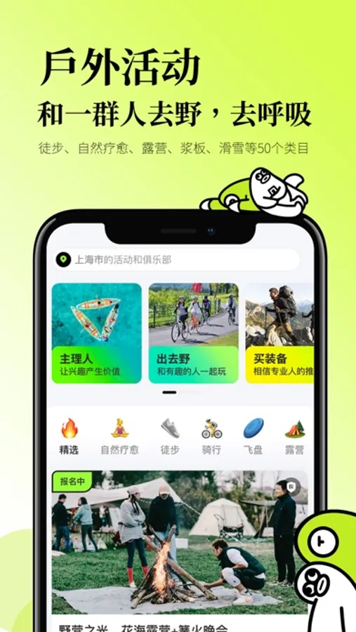无论您是新手还是经验丰富的户外爱好者,星野CAMP都可以为您提供了多样的户外体验选择。我们汇聚了各种各样的户外活动,包括自然疗愈、冥想、徒步、露营、骑行、浆板、滑雪等40多种户外活动类目,上千种活动项目。不管您是想要挑战自己还是只是想在大自然中放松身心,我们都有适合您的活动。随时随地开启你的户外生活体验!