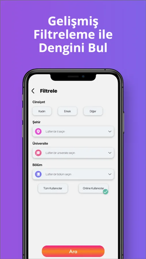- Gelişmiş Filtreleme: Dilediğin şekilde arama yapabilir ve sana en uygun arkadaşları bulabilirsin.