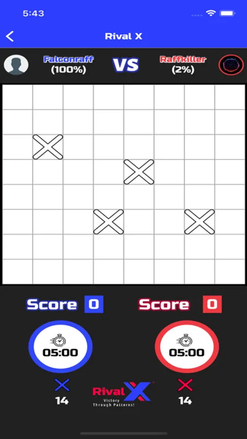 Rival X is a fun and easy to learn two-player strategy game of making any or all of the following game patterns: The X, Plus, or Five-in-a-row. Each pattern scores five points when made only with a player’s X-pieces, and less points if combined with Wild X-pieces: The first player to score fifteen points wins! Game patterns also have the potential to cancel points from opponent, give extra moves, be combined to score higher points, create exciting scoring options, and instantly win the game!
