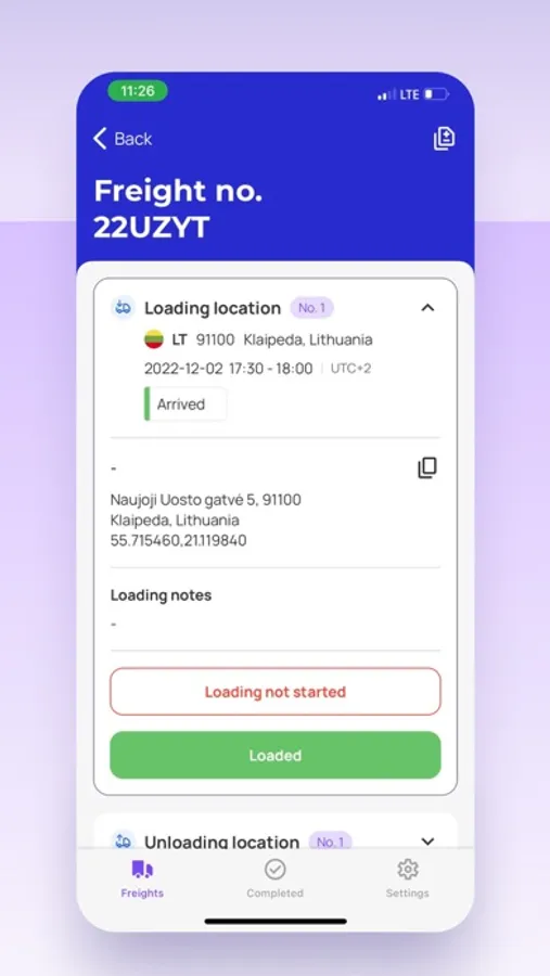 App a companion app for truck drivers. It helps to display driver tasks and its states.